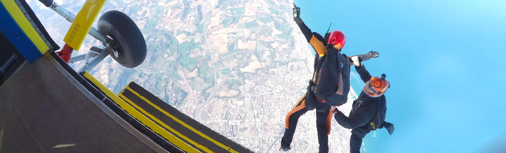 Dopo aver partecipato ad un breve corso di teoria, in cui vengono illustrate le basi del volo umano, si inizia subito con il primo lancio, durante il quale l’allievo in caduta libera dovrà effettuare degli esercizi: lettura strumenti, controllo della quota e trazione della maniglia di apertura alla quota stabilita, 1700 mt. il tutto con l’assistenza diretta di due istruttori.
